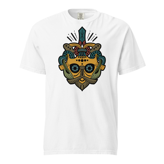 Viking Norse Odin Mask Heavyweight T-Shirt – Nordic Pagan Warrior Design – Unisex